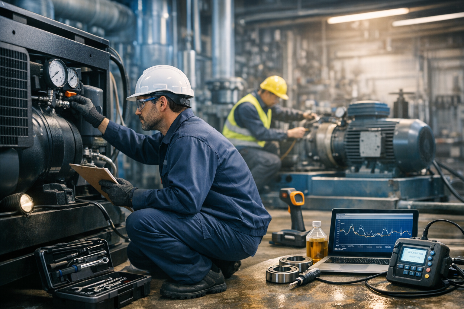 That is why preventative maintenance plans are so valuable. They help you stay ahead of wear, contamination, vibration, leakage, and efficiency loss before those issues start affecting production. In a busy facility, that can mean fewer shutdowns, better energy performance, and more predictable maintenance budgets.